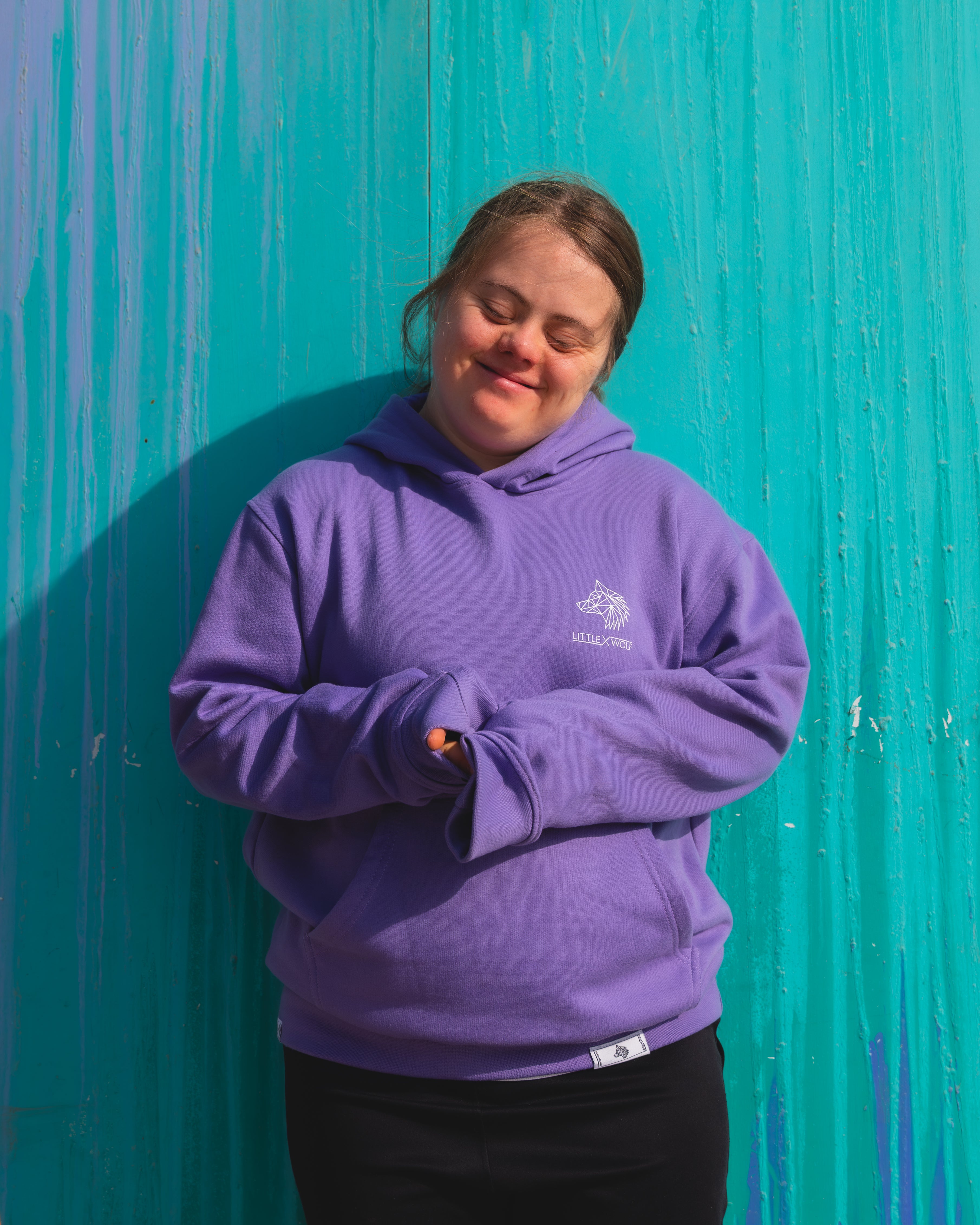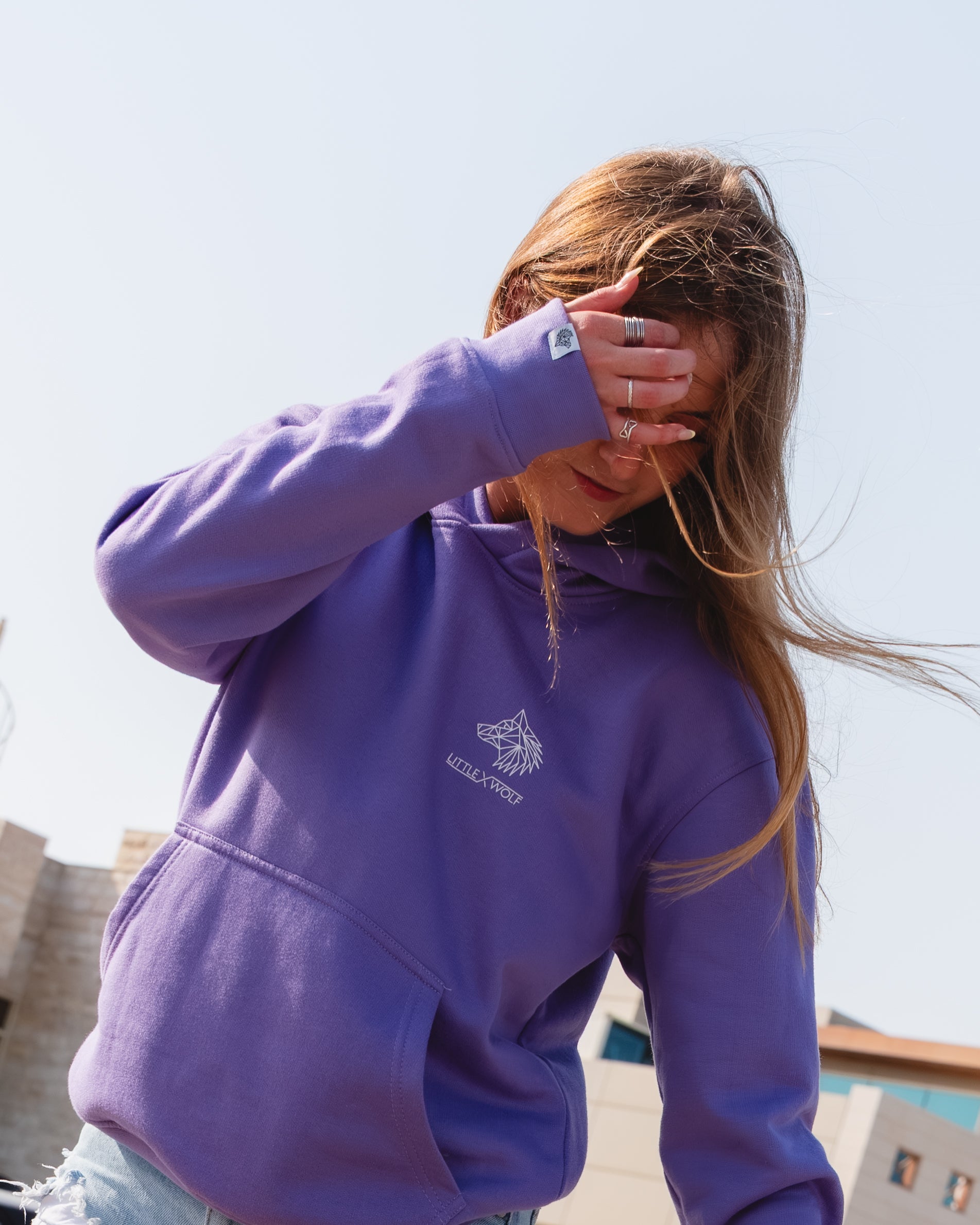 Embrace purpose and style with the LittleXWolf Purple Hoodie. Featuring our signature #BeAnIncluder message, this coz...